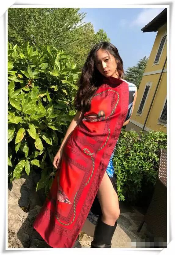 郑秀晶这次穿了一件设计独特的前后拼接的连衣长裙,裙子开叉的设计看起来妩媚动人,一双黑色长靴,浑身还是散发着一种冷气,虽然在阳光下依然掩不住啊!