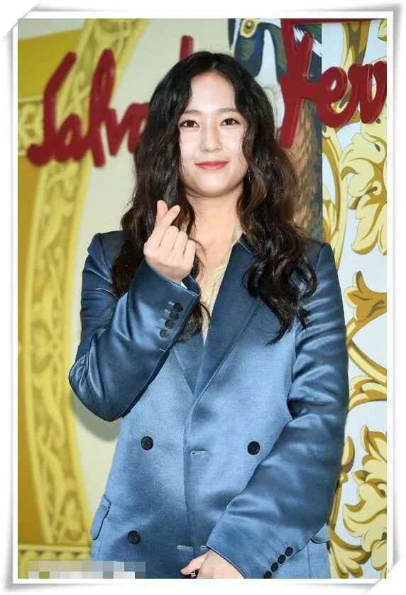郑秀晶虽然胖了不少,但是她的底子还是好的,五官精致,就是多了点肉肉的感觉,一头泡面头还是少女的样子,手比心的样子也是可爱十足呢!