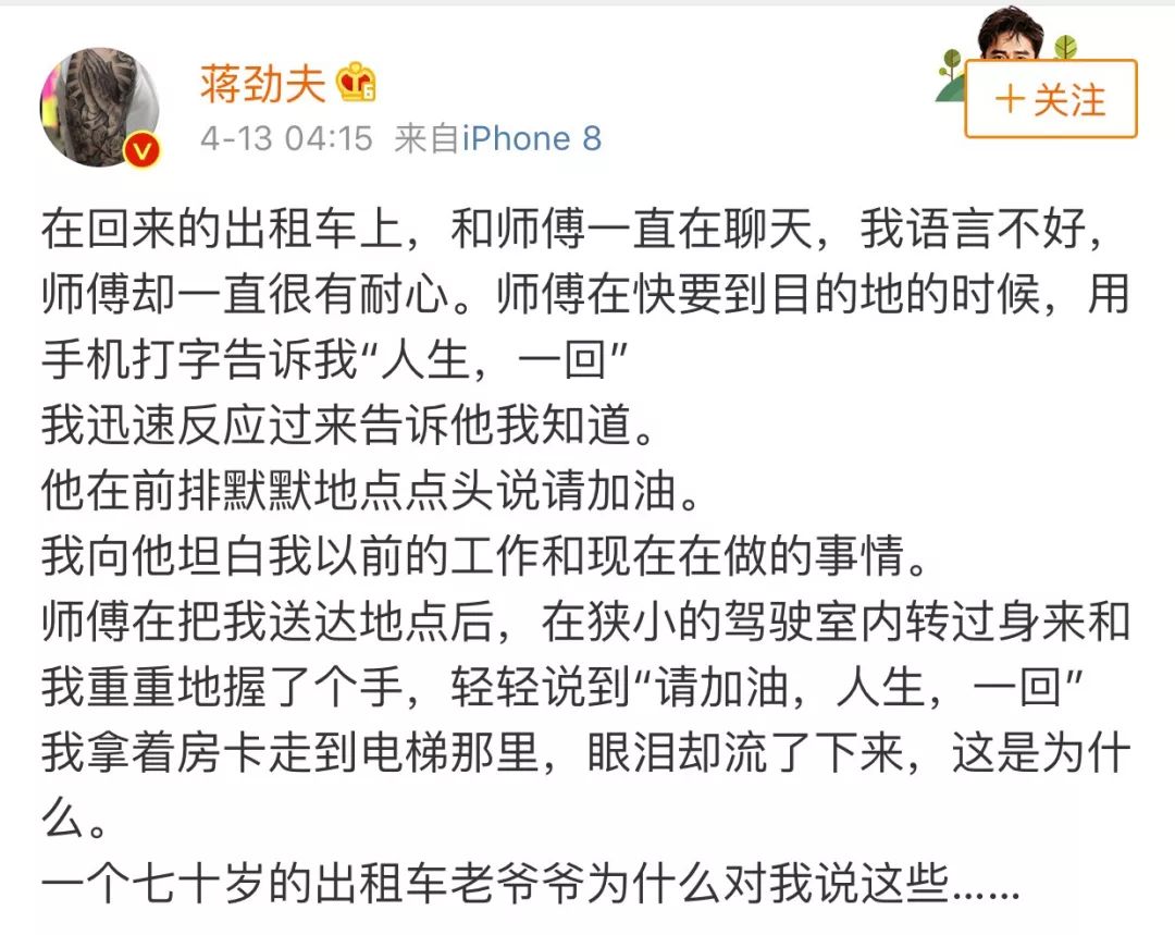 他的微博比起一个大明星,
