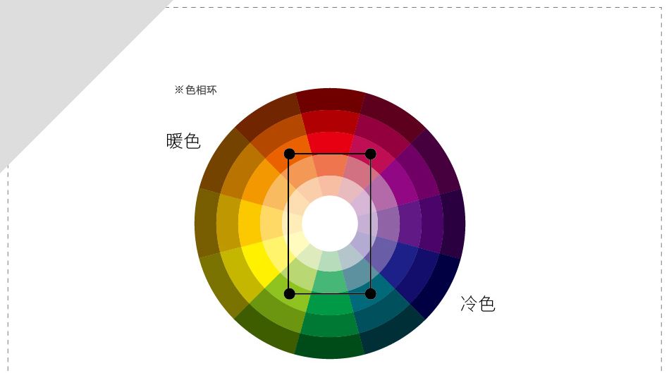 四单元配色,选定桔色主色及蓝色补色之后,第三种颜色可选择色换上与主色相隔一个位置的颜色。最后一个颜色选择第三种颜色的补色,在色环上正好形成一个矩阵。色调各不相同但又互补,可以营造出一种生动活泼的效果!