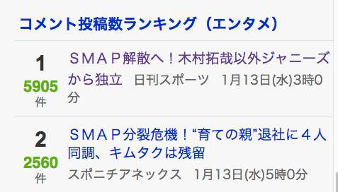 从日本时间凌晨2点新闻发布后,SMAP解散相关话题已占据Facebook,雅虎以及推特等讨论热门榜首,随即微博上也引起了粉丝们的关注。