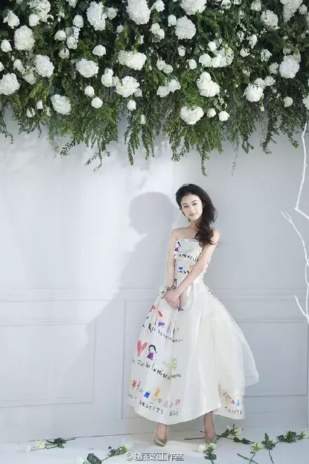 精美的手工刺绣花卉在礼服上初初绽放,宛如玫瑰盛放,将本就白皙动人的赵丽颖衬托得更为唯美大方。
