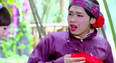 邓超总给我一种扮女装上瘾的感觉,曾多次尝试女装造型:他曾穿吊带裙大跳孔雀舞,他曾调皮的编上麻花辫、头戴大红蝴蝶结扮翠花,还曾戴上披肩假发和杨幂扮“姐妹花”。