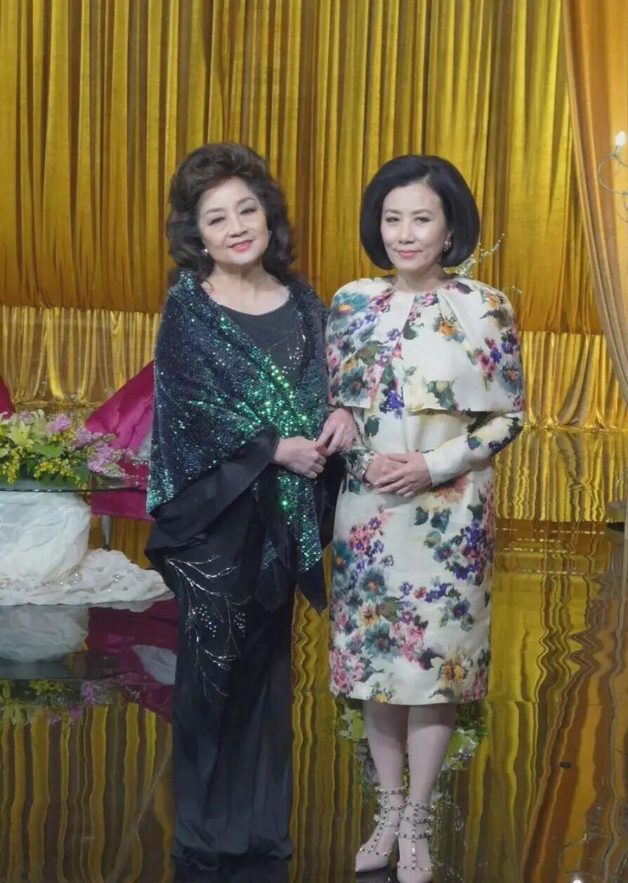 但是两个人站在一起的话,感觉汪明荃整个人的状态看起来会更好一点,因为她的皮肤看起来比较的紧致,而且身上的气质也会显得更加的优雅大气,特别是这个时候她穿着一条碎花裙。