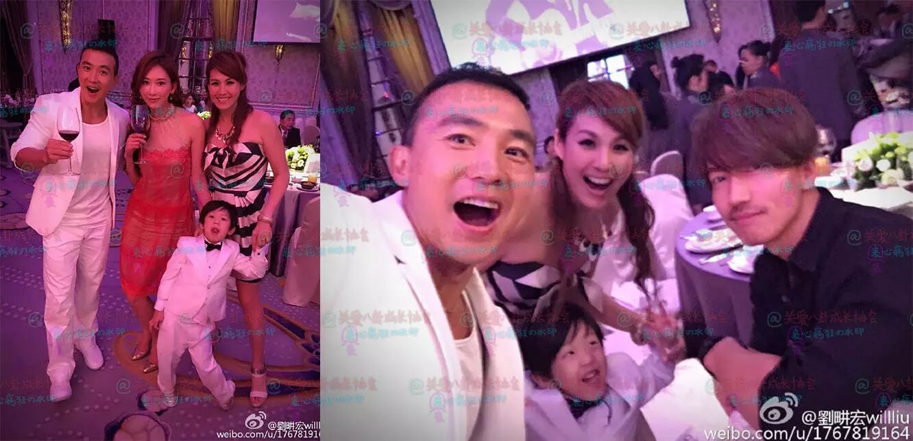 配了两张刘畊宏全家分别与林志玲和言承旭的合影