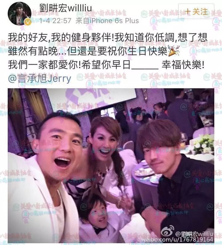 我们从水印找到来源,原来是他昨天发了一条给言承旭庆生的微博,特意放出了这张几个月前的合影,还祝他早日____幸福快乐,中间还留了空白给大家填空,不得不说这背后看来还别有一番用心啊!
