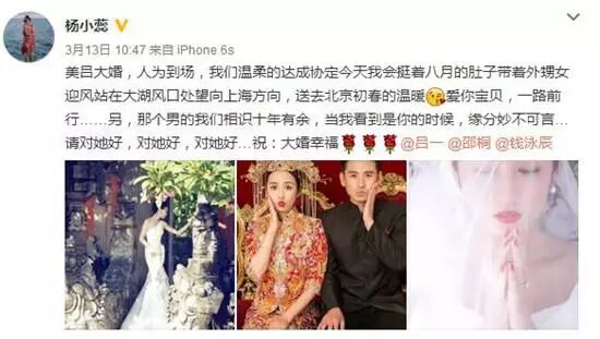 一般的女演员结婚了有娃了,都巴不得全天下都知道,大张旗鼓的发微博,逛街被媒体拍到。再看看杨蕊,就这么轻描淡写的一带而过。她和吕一再《菩提树下》里是“情敌”,戏外却成了要好的闺蜜。