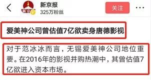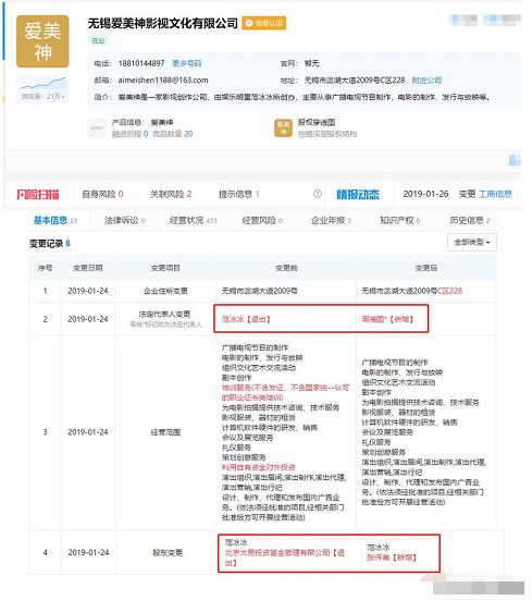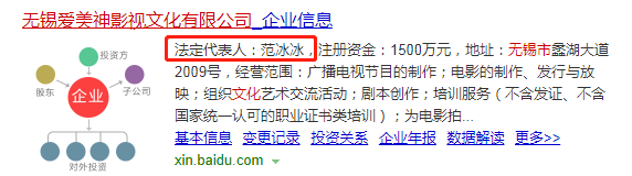这次遭遇退股风波的公司,就是原先以范冰冰为法人代表的无锡爱美神影视文化有限公司。