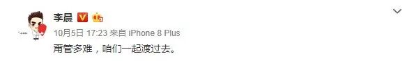 直到范冰冰“宣判”后,李晨才发了一条表示共患难的微博。