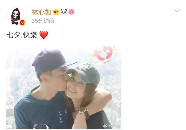 去年七夕时,林心如发了个微博,附上霍建华霸气亲吻她的照片,秀了把恩爱。