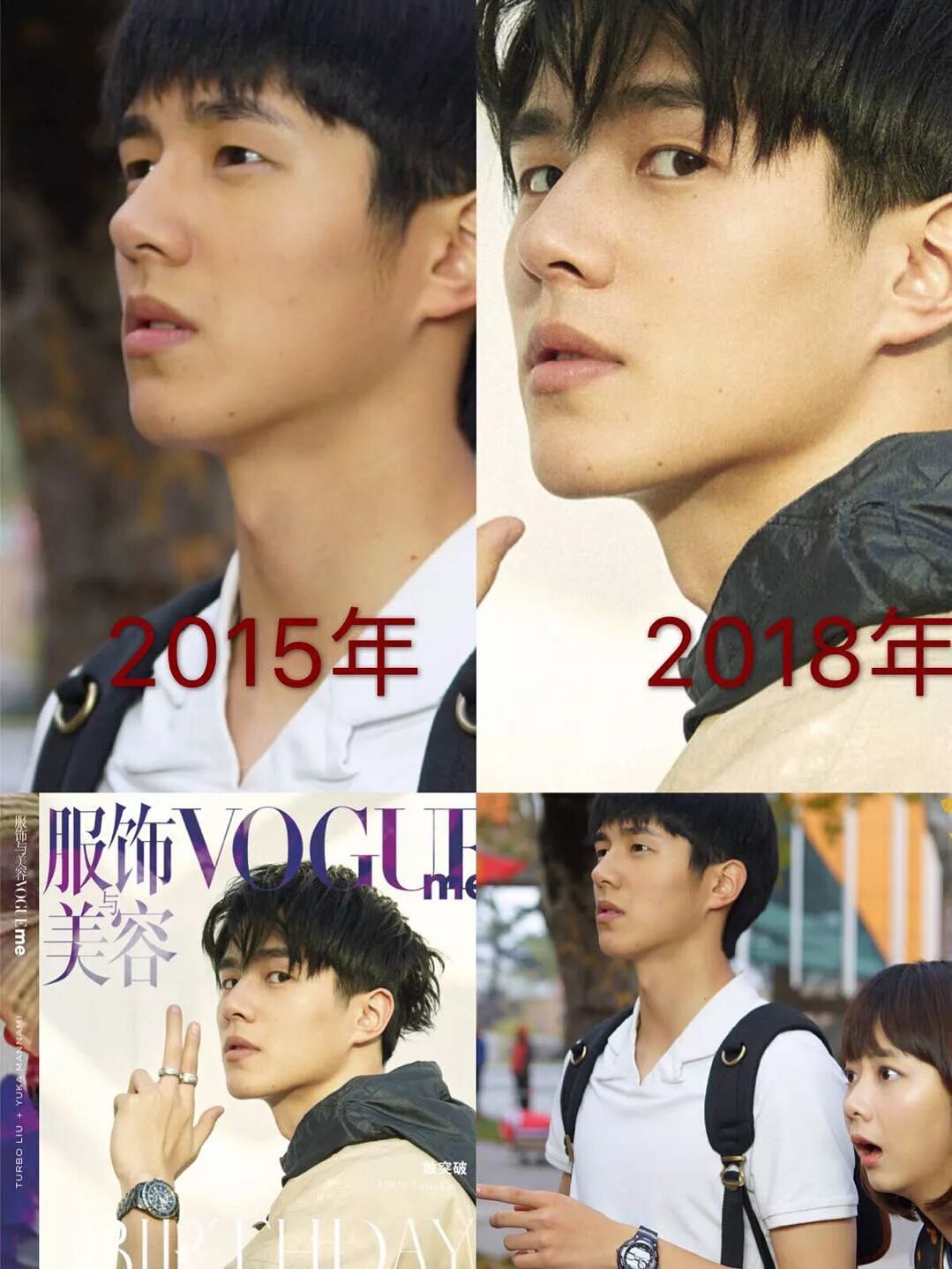 大家不妨看一下刘昊然这几年来的对比图,侧面照,15年和18的照片看起来也没有什么差别。