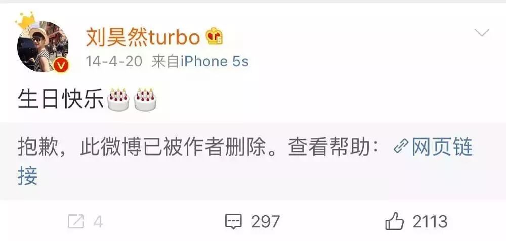 刘昊然14年曾转发过给那个女生的生日祝福,而且一直没有删除这条微博,说明坦坦荡荡,不怕别人看见。
