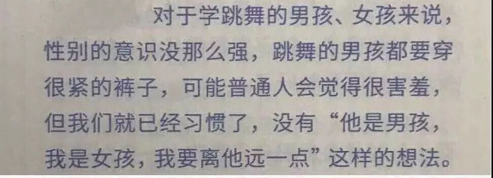 他说“对于学跳舞的男孩女孩来说,性别的意识没有那么强”,所以习惯了这种和女生之间的相处方式。