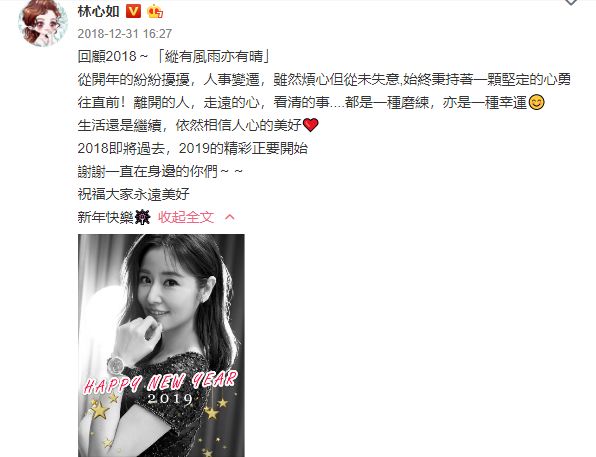 倒是林心如自己在18年年末时,发过的一条微博,令人浮想联翩。