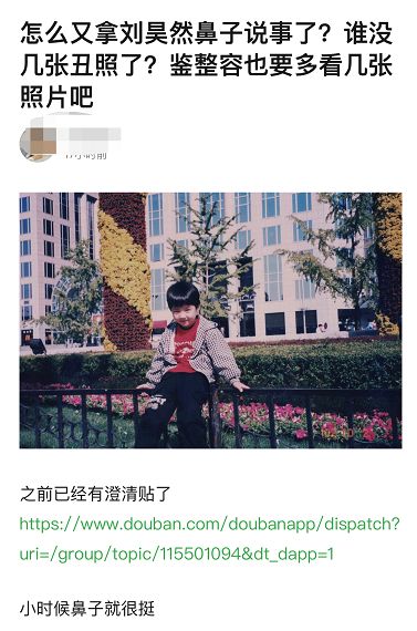 这事儿澄清了之后,又有人说刘昊然整容,说他现在鼻子和照片中不一样了。