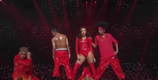 相比之下,另一位性感idol华莎的情况就好太多了,都是高叉泳衣装,但是这次的舞台是MAMA,就被网友捧上了天: