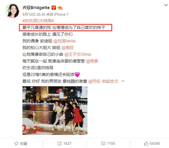 可是这完全不科学啊,6月10号的时候乔欣还发微博说:最平凡普通的我,也慢慢成为了自己喜欢的样子。(这似乎是在打自己的脸啊)