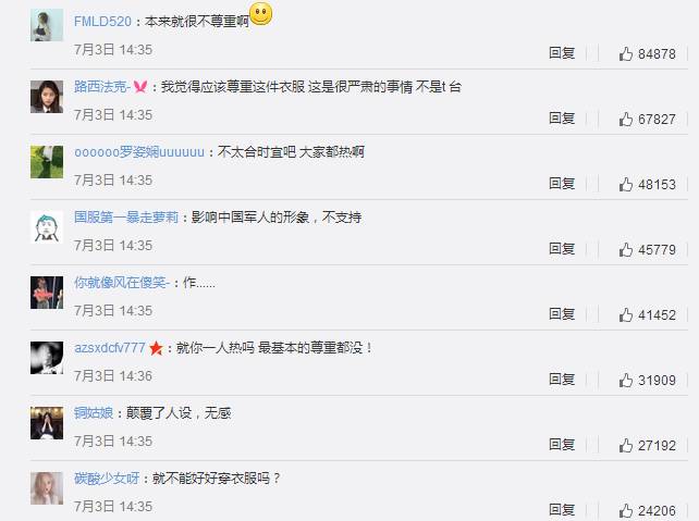 在综艺《约吧大明星》中,所有艺人都要体验消防官兵的生活,包括着装、状态、专注程度等,可在紧急集合的时候乔欣却没有认真的穿消防服,而是把它当成了露肩装穿,不仅被节目中的教官狠训,更遭到了网友的猛烈批评,有人说她演完《欢乐颂》膨胀了,有人说她不尊重消防官兵。