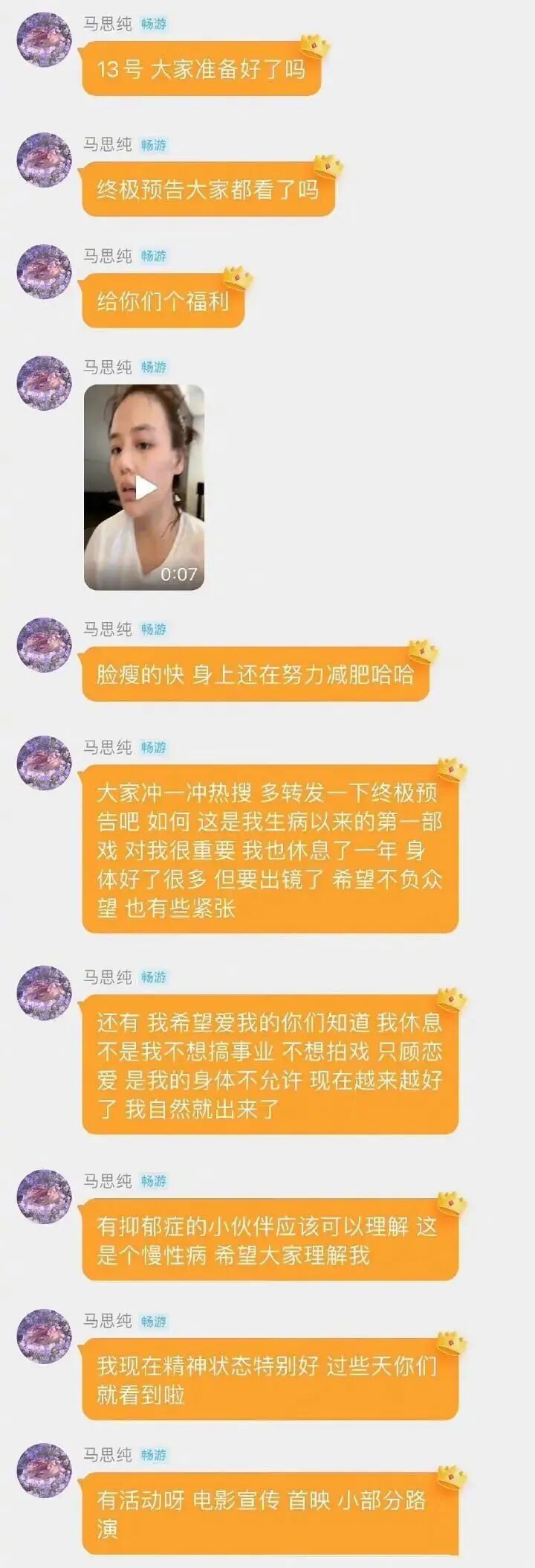 很长一段时候,马思纯都患有抑郁症,变得敏感、发胖。