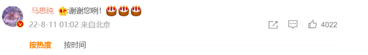 《张哲轩祝马思纯新电影票房大卖 小马官宣甜蜜回复》,中华网,2022.08.11
