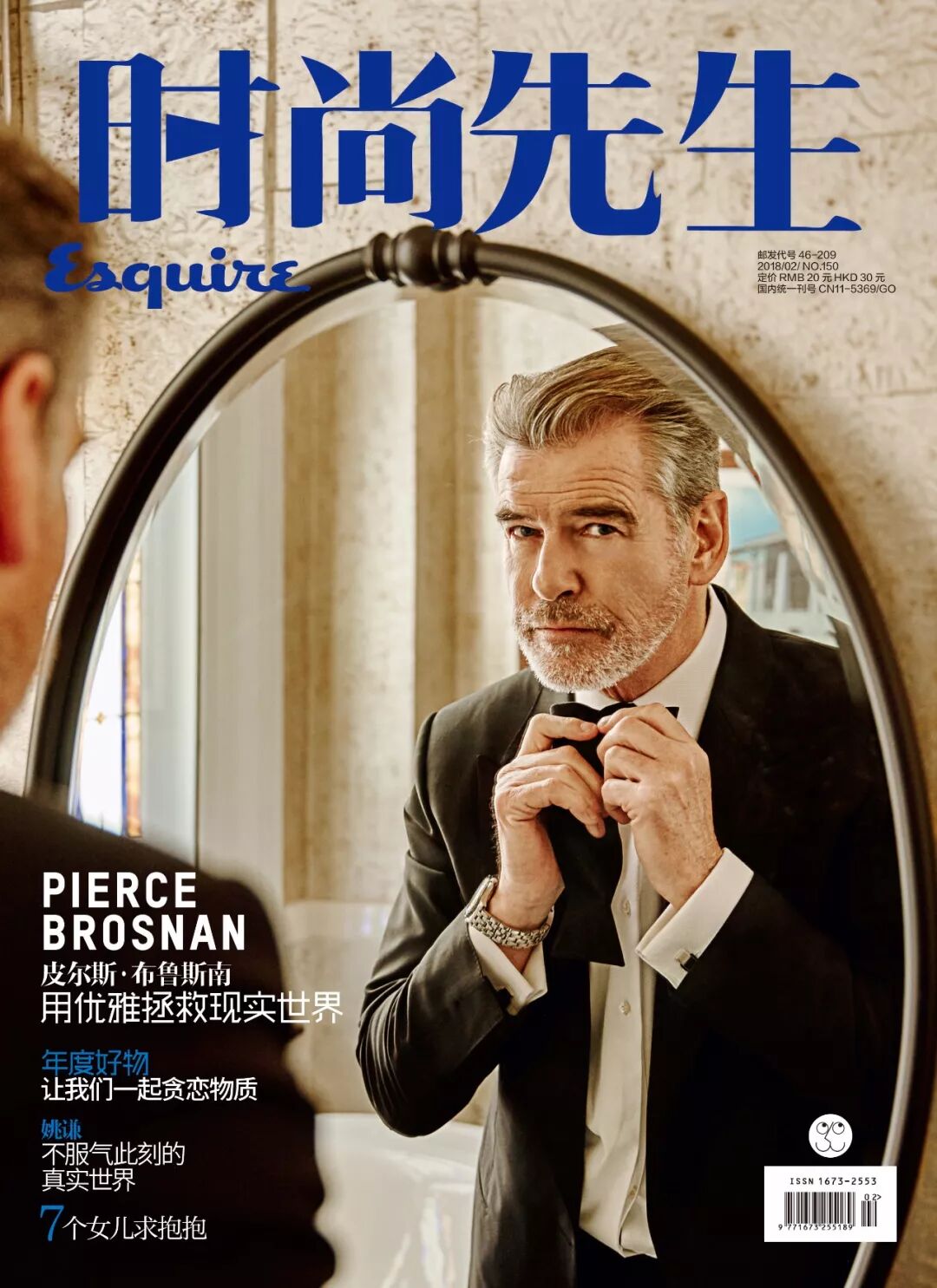 皮尔斯·布鲁斯南登上《时尚先生 Esquire 》 2018 年 2 月刊,讲述他用优雅拯救世界的故事。