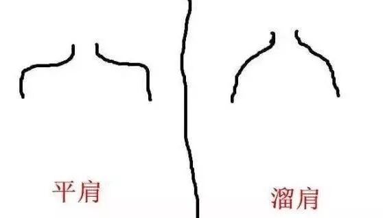 也可以采取更直观的方法,观察颈部和肩膀的线条:溜肩线条往往顺滑,平肩的线条能明显看到转折角。