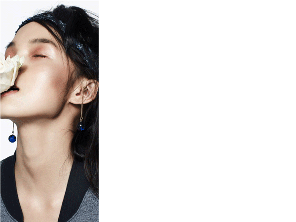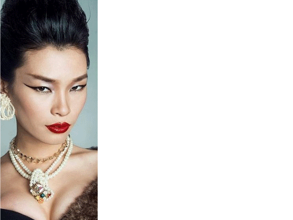在本来就细长的眼睛上,用眼线把眼睛画得极致的细长且上挑,如同中国水墨古画里的美女形象,增添了她的“神秘”色彩。