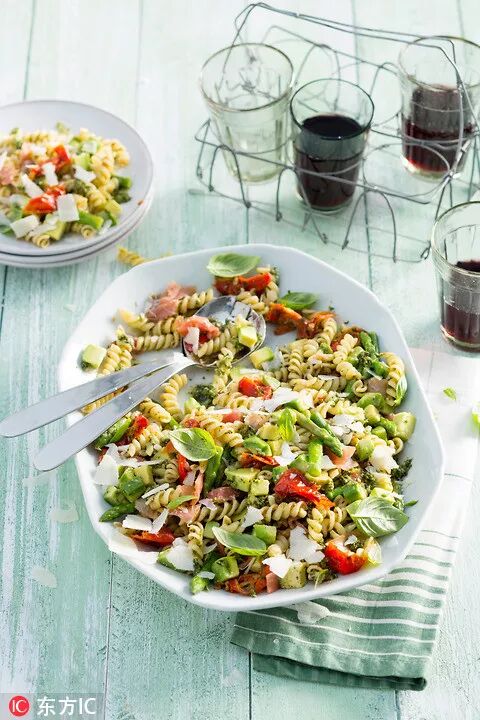 ∆牛油果青芦笋意面沙拉拌烟熏火腿