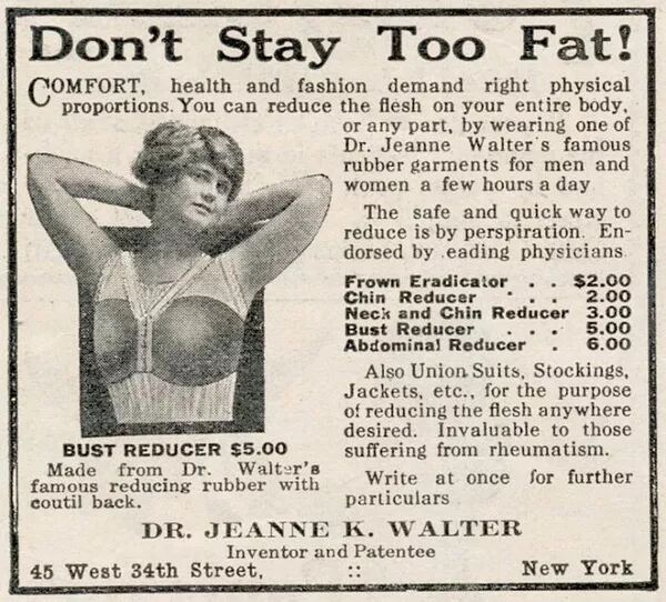 ∆19世纪时出现在纽约的一则减肥衣的广告,题为“不要太胖!图片来源:Collectors weekly
