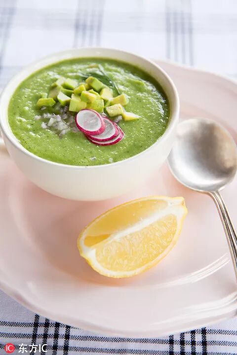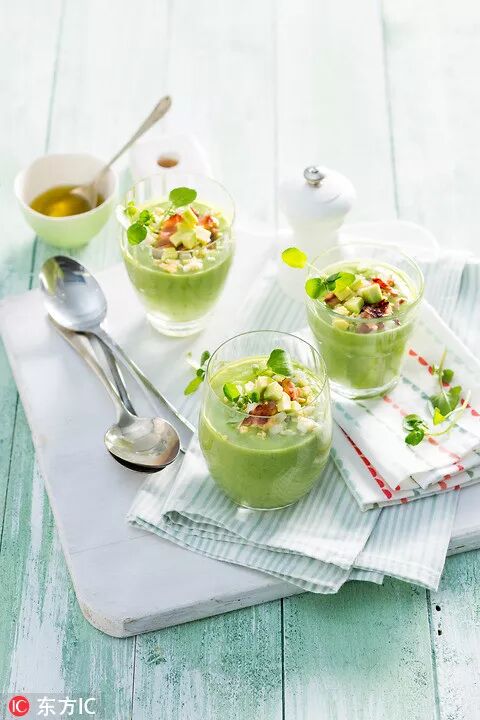 ∆牛油果水芹汤,里面加进鸡蛋与培根
