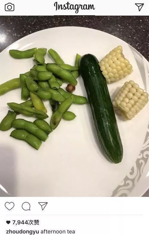 即使不到80斤,周冬雨还是对自己的饮食有着严苛的要求,看看人家的下午茶:一条青瓜、两小截玉米、一小把毛豆...
