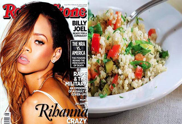 歌坛小天后蕾哈娜一直维持着性感好身材,关于减肥,她说:“我觉得减肥的女生也不用太亏待自己,但是我自己有坚持吃大量的蔬菜和白肉,并且我会离碳水化合物远远的!”结果晒出的饮食是藜麦。