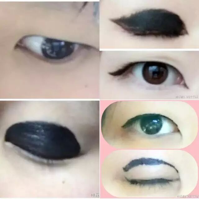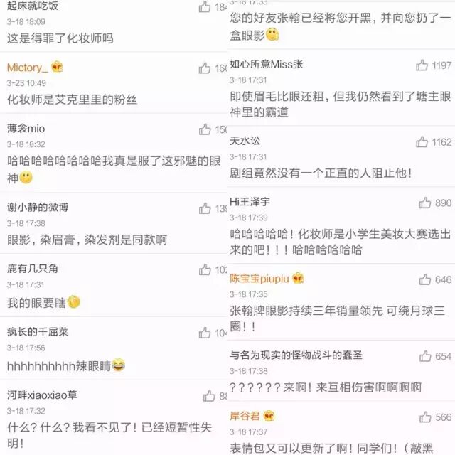可是就算画这么宽的眼影,张翰睁开眼睛还是看不到多少。