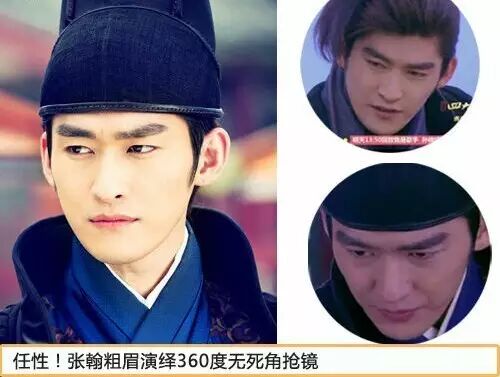 在电视剧《四大少年名捕》中,张翰的毛笔般粗眉更是有亮瞎屏幕的领先优势。感觉眉毛跟眼睛的宽度已经快接近啦。