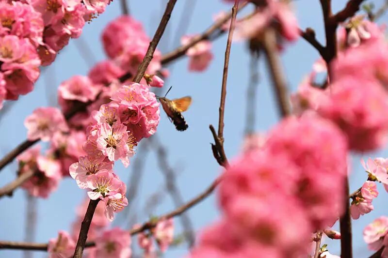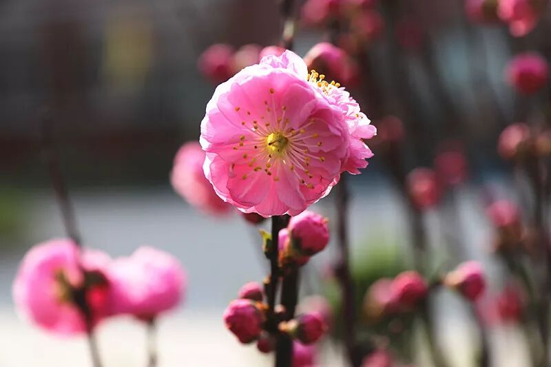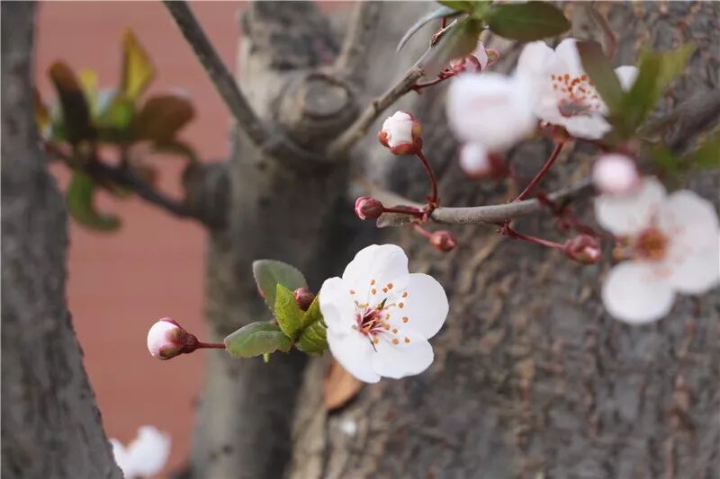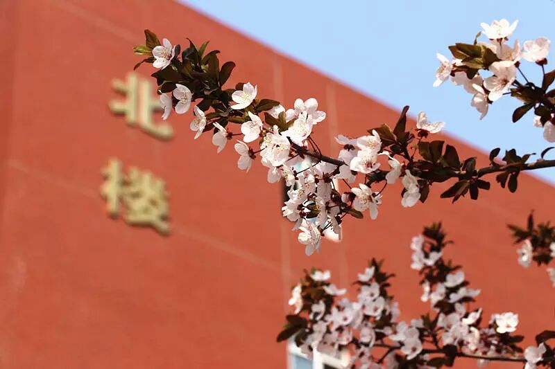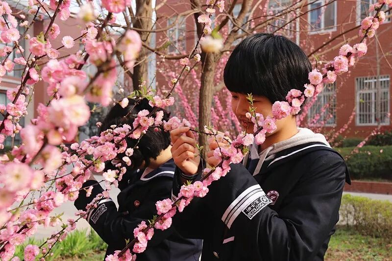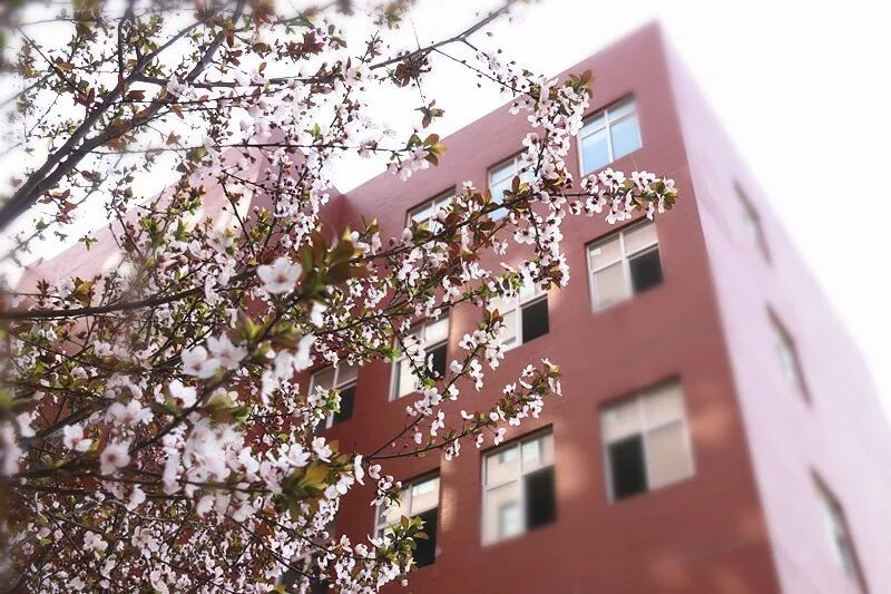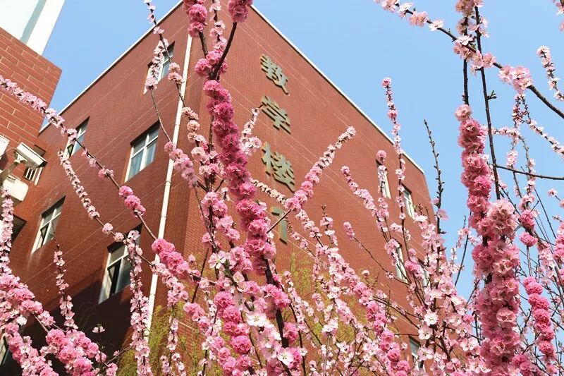 教学楼两边的榆叶梅,像春天的使者,