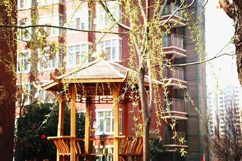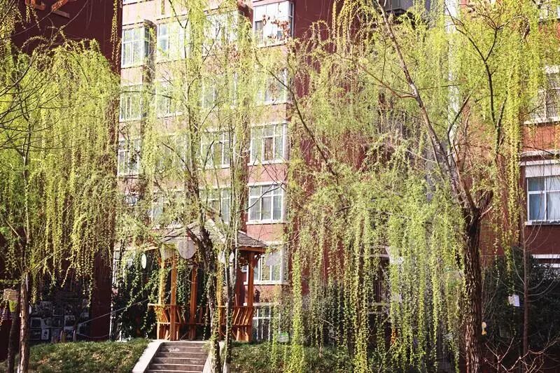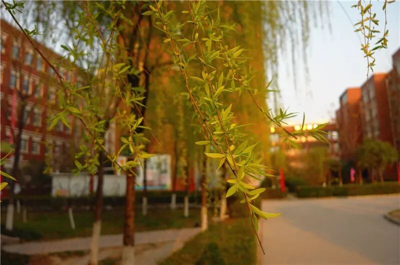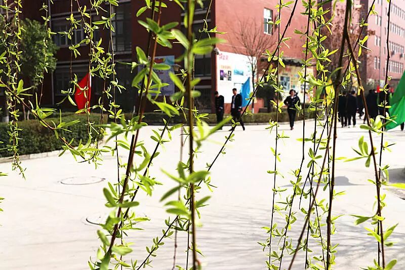高高的柳树长满了翠绿的新叶,轻柔的柳枝垂下来,就像万条轻轻飘动的绿色丝带。这细细的嫩叶是谁的巧手裁剪出来的呢?原来是那二月里温暖的春风,它就像一把灵巧的剪刀。冬去春来,一场春雨过后,沉睡的柳树苏醒了,那细细长长的枝条上泛出一层新绿,孩子们在柳枝下发奋苦读,茁壮成长,美丽的校园里洋溢着青春的气息。