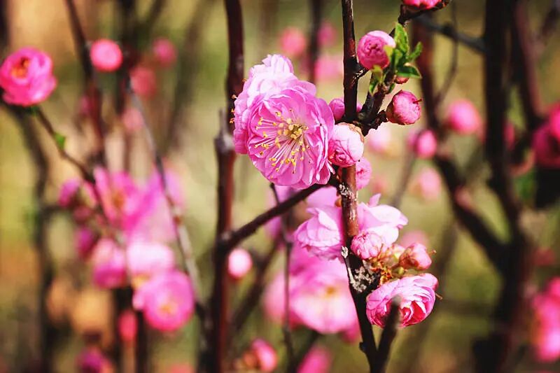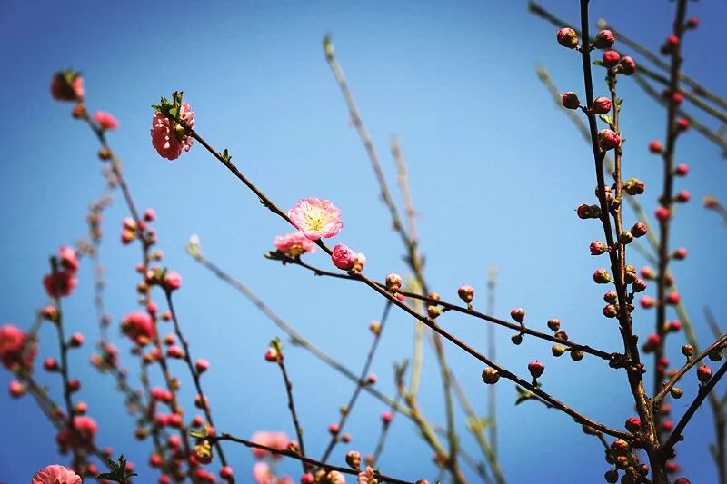 暖风吹,柳抽芽,桃花开。
