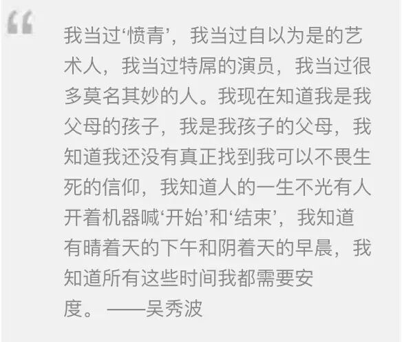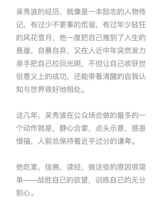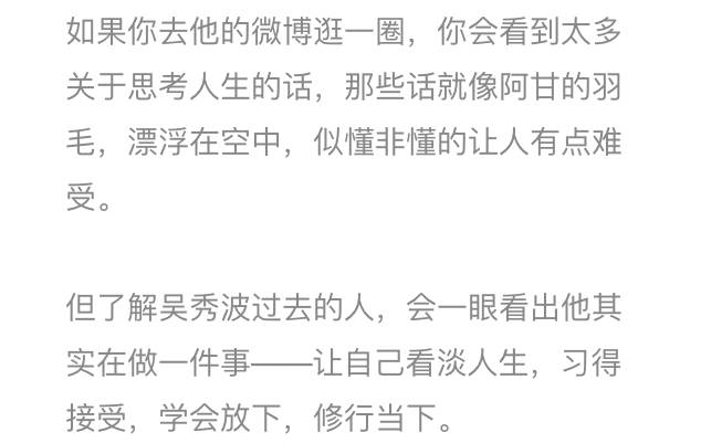吴秀波:平常心看待无常事 上楼 内地男星 2016-10-17 11:27:39 476 创作不易,用心坚持,欢迎请BaGua喝几杯爱心咖啡!打赏并支持本文 打赏并删除本文 曾经坎坷方能平常心看待无常事曾经痛苦方知珍惜幸福曾经执着才能放下执着(备注:本文图文来源于 十点读书会,著作权归原作者所有。)初秋微凉,一杯热茶更能带来体内温度一茶在手,让你的秋天倍感温心霍山黄芽,品质恒定、四季如新上樓,一款有性格的绿茶上楼电话:133 6579 4093喝茶微信:188 5605 8370请长按二维码识别关注 创作不易,用心坚持,欢迎请BaGua喝几杯爱心咖啡!打赏并支持本文 打赏并删除本文 感谢您的支持鼓励,我会继续努力的!文章地址:用户邮箱:打赏金额:USDT 请输入数字点击”去打赏“,即可进行打赏支持本文章哦 吴秀波 About the Author 上楼 功能介绍:有趣,有料,有好茶。外边儿天儿冷,上楼坐坐。 Related Posts 吴秀波:平常心看待无常事 2016-10-17 11:27:39 发表评论
