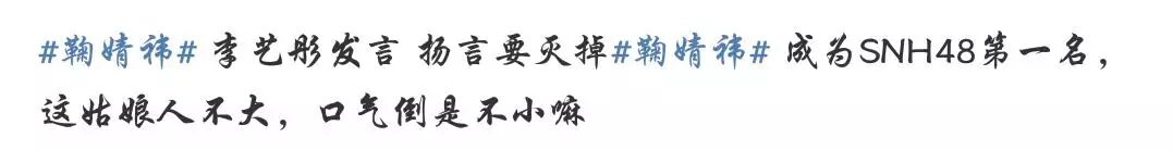本来一段看似平常的获奖感言,却一经播出就引发了网友们的热议,有的网友表示“真的是输不起,语气真凶”还有网友暗指李艺彤这是撕B冠军鞠婧祎的节奏吗!