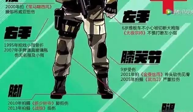曾在华少主持的节目中,罗列了吴京拍摄时所有受的伤,竟多达60多次。
