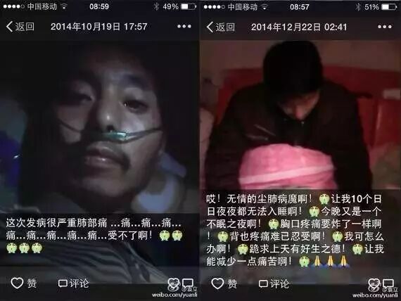 当我把他带到医院,把钱给他,放到了他枕头底下,他抹眼泪了。这是别人告诉我的,我没看到。最后在上个星期,他也走了。因为尘肺病是一个不可逆转的病。得了,就一定会走向死亡,只是时间长短的问题。
