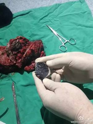 很多志愿者给他们呼吸机,2000块钱一台还是2200块钱一台,只能暂时解决他们的一个呼吸的问题,根本不能改变他们的肺(里)已经有一块一块的金属石头(的状况)了,这没有办法了。当我们去给刚才我提到过的一个病人做手术的时候,他的肺拿出来切的时候,那个手术刀切下去的时候,咔呲咔呲咔呲,下不去。里面有一块石头,下不去。你知道所以他会很痛很痛很痛。