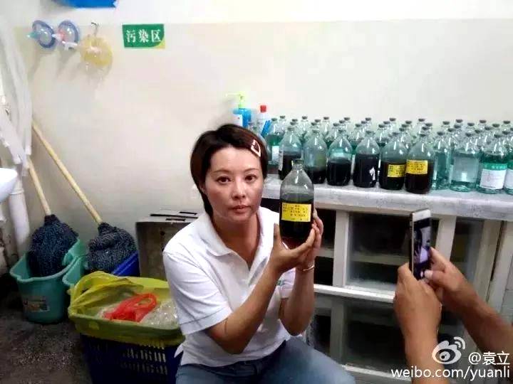 ▲这个水是什么水,这个是我最后一天,我说去医院看看吧,没想到在医院里面发现了很多黑色的水。黑色的水是从他们的肺里面洗出来的,肺里面一瓶瓶洗出来的。一个人可能要洗掉二十多瓶。