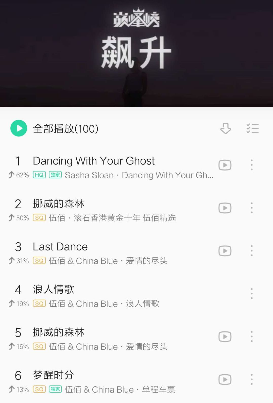 在 QQ 音乐、网易云音乐上登顶成为了伍佰收听量最高的歌曲。
