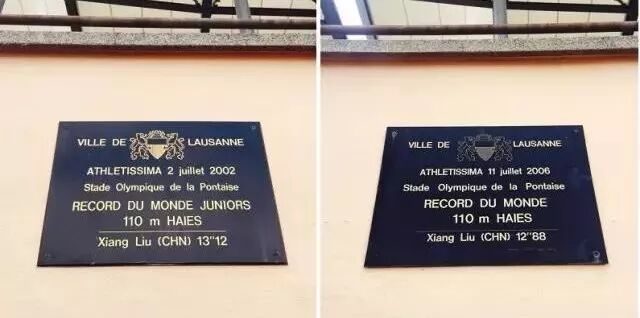 那两块铭牌,见证了刘翔在这个体育场,一次打破世界青年纪录,一次打破世界纪录。
