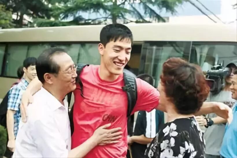 ▲ 刘翔和父母告别,那时候,他的脚伤还没有明显发作