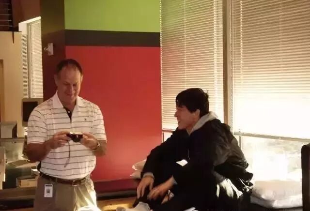 ▲ 刘翔在德州医疗中心做康复时,和理疗师罗斯聊天