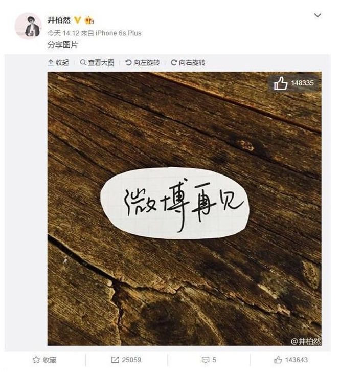2016年9月23日井柏然宣布退出微博,之后就没更新过动态,连点赞都没有。事情的起因是好友乔任梁的去世,翻开井柏然悼念乔任梁的微博才知他经历了怎样的谩骂。