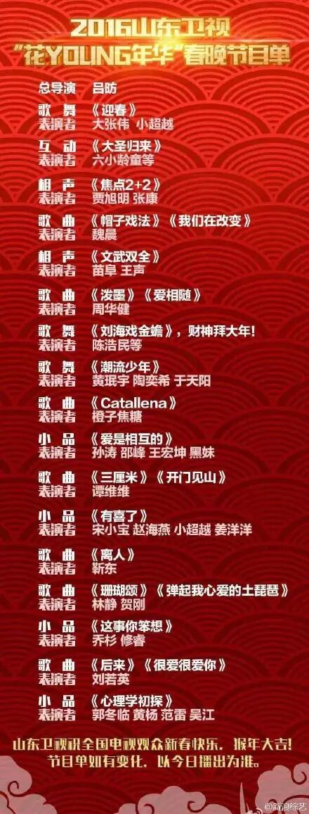 分别是山东春晚(2月4日已播出)
