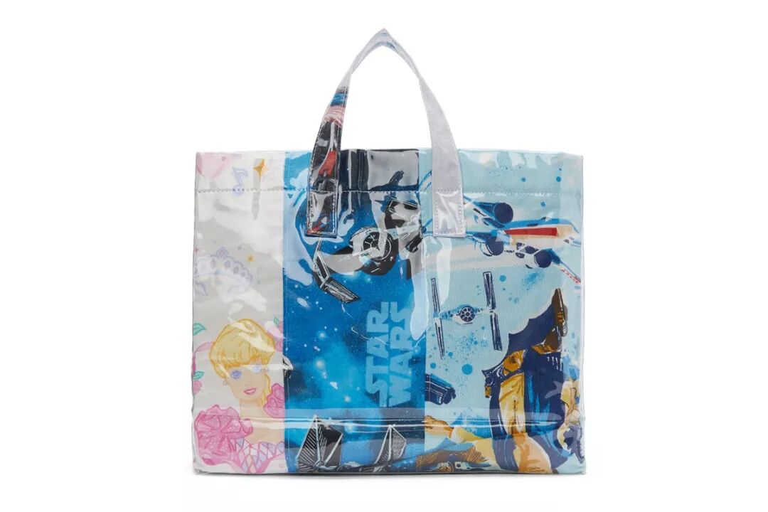CDG设计的PVC 材质制作的包袋,一直受大众欢迎,此次CDG以童年床单的灵感当为主题展开,打造了全新的透明材质包袋,在设计上加入了星球大战和芭比娃娃图案拼接而成,据悉它的售价在$240美元,感兴趣的朋友不妨在SSENSE网站购入。